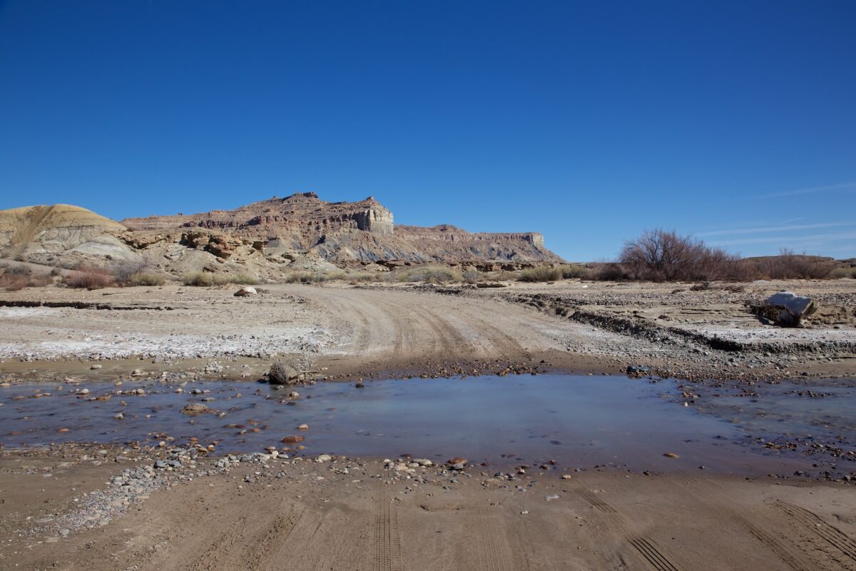 Der komplette Weg ist nicht geteert. Die Straße wird von mehreren Washes gequert bei denen man vorher nicht weiß, ob sie trocken und befahrbar sind. Bevor man die Straße befährt, kann man sich im Bureau of Land Management in Big Water nach dem Straßenzustand erkundigen. Nach unserer Erfahrung ist es jedoch sinnvoller sich einfach auf das eigene Bauchgefühl zu verlassen und sich die Bedingungen vor Ort anzusehen. Umkehren kann man immer. Generell gilt allerdings meist, dass Dirtroads nur im trockenen Zustand befahren werden sollten.