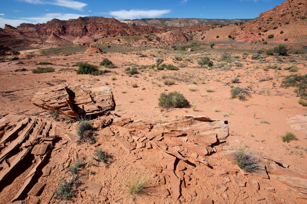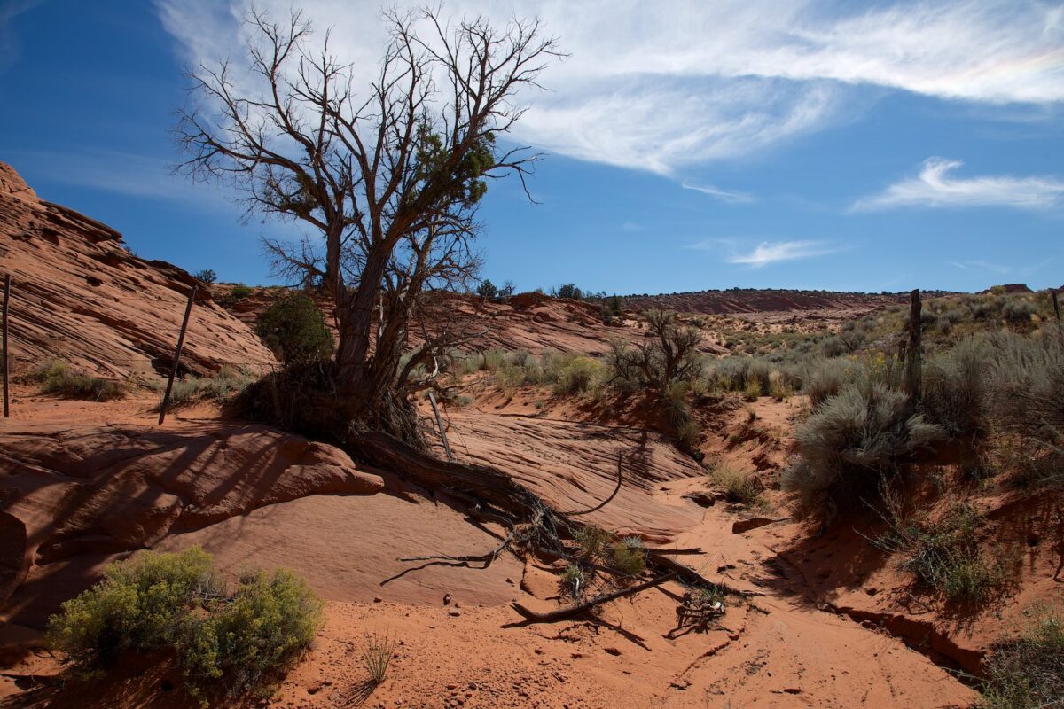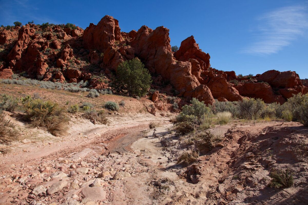 Beschreibung: Die Anfahrt erfolgt über die House Rock Valley Road. Nach etwa 6.5km quert man den Buckskin Gulch. Gleich danach befindet sich der Abzweig zum Trailhead auf der linken Seite. Der Abzweig ist beschildert. Sollte der Buckskin Gulch nicht befahrbar sein, kann man das Auto davor stehen lassen und zu Fuß gehen. Der Trailhead ist nur gute hundert Meter entfernt. Da man während der Wanderung mehrere Male den Buckskin kreuzen muss, sollte man kurz abwägen, ob man die Wanderung nicht lieber bei Trockenheit in Angriff nimmt. Bei Nässe kann das sonst zu einer sehr schlammigen Angelegenheit werden.