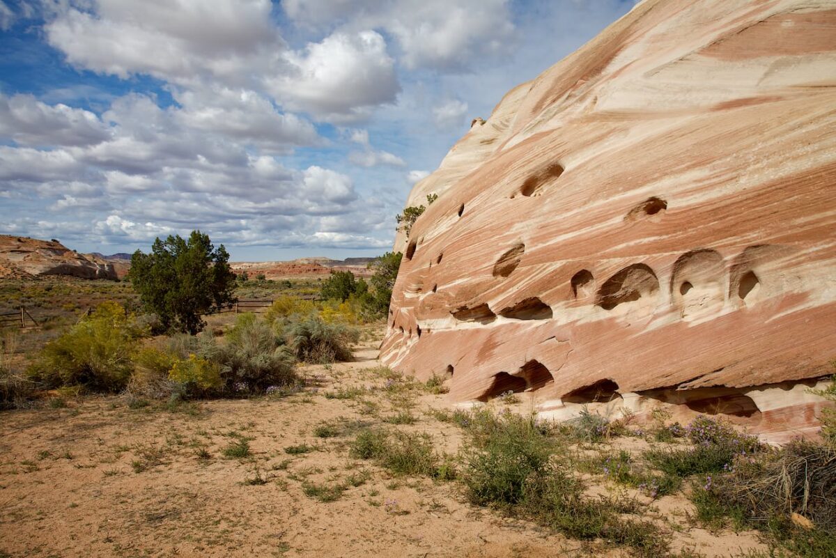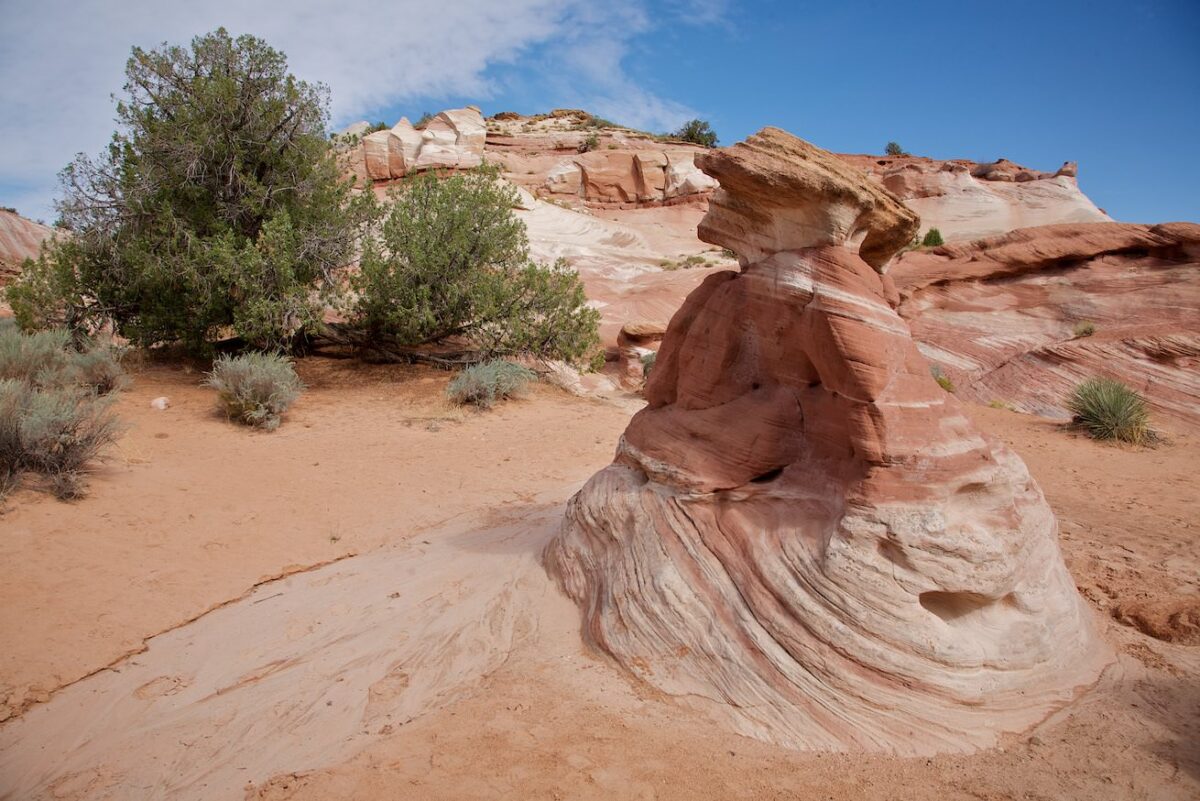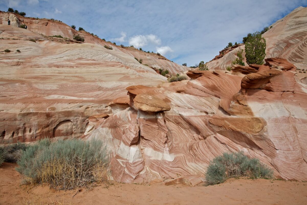 Beschreibung: Man erreicht den Campingplatz, wenn man an der Paria Contact Station, links in die White House Road abbiegt. Die Contact Station liegt etwa 48km westlich von Page und etwa 70km östlich von Kanab direkt am Highway 89. Am Ende dieser Straße befindet sich der Campingplatz. Die schönen bunten Felsen befinden sich rund um den Campingplatz. Es gibt keine Trails, man kann überall herumlaufen.