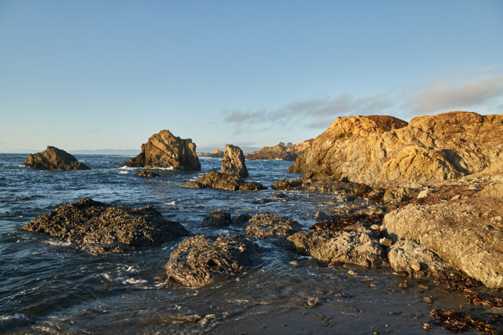 Beschreibung: Die Strände des jetzigen Glass Beach in Fort Bragg dienten seit jeher als Mülldeponien. Von 1906 bis 1967 wurden dabei drei Strände vollständig mit Müll gefüllt. Um eine weitere Schädigung der Umwelt zu vermeiden wurde nach 1967 begonnen, die Deponien aufzuräumen und zu säubern. Das weggeworfene Glas wurde allerdings durch die Wellen und das Wasser zerbrochen, zerkleinert und zermalmt und bildet jetzt die kleinen bunten Glasscherben am Glass Beach.