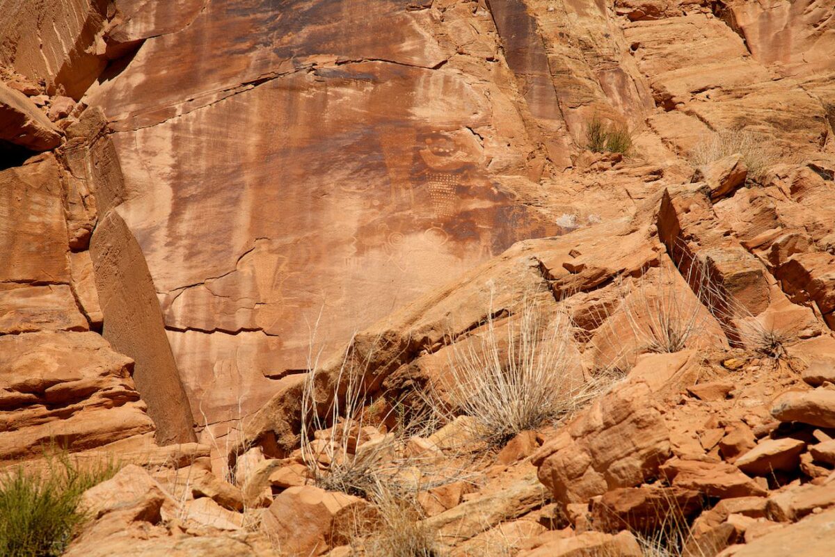Beschreibung: Der Island Park liegt westlich, ein wenig abgelegen vom Hauptteil des Parks. Man erreicht ihn über eine etwa 25km lange ungeteerte Straße. Diese gute Dirtroad sollte bei trockenen Bedingungen von jedem PKW befahrbar sein. Die landschaftlich sehr schöne Strecke bietet viele Gelegenheiten zum Anhalten. Wegen der Abgeschiedenheit hat man hier die Natur auch meistens für sich alleine. Am Island Park angekommen bieten sich ein paar sehr schöne Aussichtspunkte auf den Green River der hier ein paar attraktive Kurven schlägt. Außerdem finden sich hier ein paar Möglichkeiten Boote für eine Fahrt auf dem Fluss einzusetzen. Auf dem Weg gibt es ein paar sehr schöne Petroglyphen zu entdecken. Die McKee Spring Petroglyphs erreicht man indem man von der Straße einen kleinen Hügel hinaufklettert. Koordinate Parkplatz: Länge 40.508312; Breite -109.197542. Der Parkplatz ist beschildert und der Weg zu und um die Petroglyphen ist gut erkennbar.