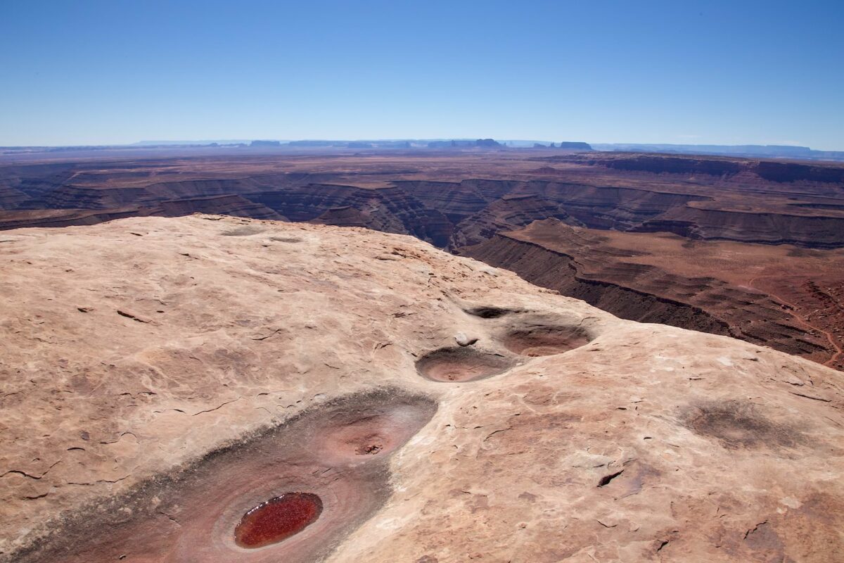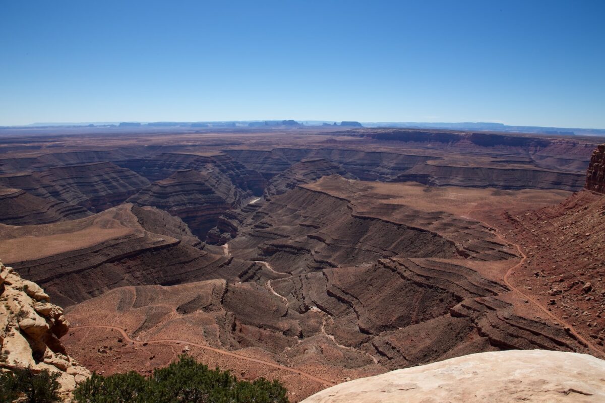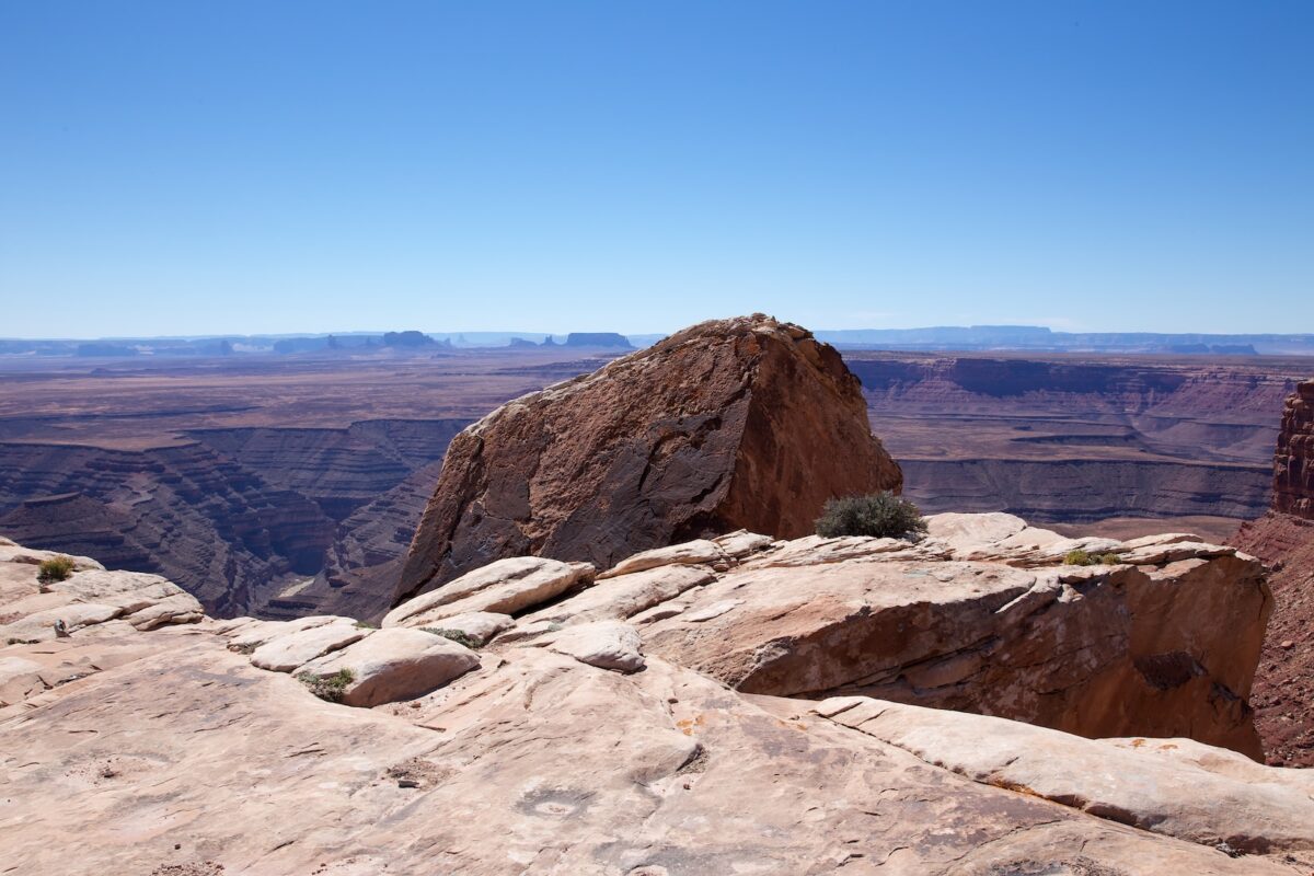 Beschreibung: Der Muley Point ist ein Aussichtspunkt etwa 8km westlich vom Moki Dugway auf dem Cedar Mesa. Die ungeteerte Straße zum Muley Point zweigt direkt am oberen Beginn des Moki Dugway nach Westen ab. Man folgt ihr etwa für 8km und hat dann den Parkplatz am Muley Point erreicht. Hier hat man einen tollen Ausblick auf den Goosenecks SP und das Monument Valley in der Ferne am Horizont. Der Mulley Point liegt auf dem Gebiet der Glen Canyon NRA.