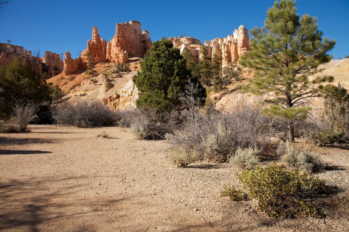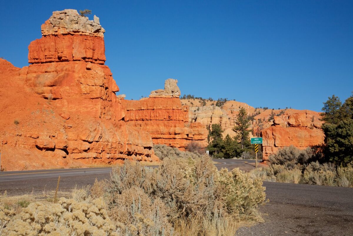 Beschreibung: Der Red Canyon liegt etwa 15km westlich des Bryce Canyon NP. Der Park liegt direkt am Scenic Byway 12 und wird wohl von den meisten Touristen auf dem Weg zum berühmten großen Bruder, dem Bryce Canyon NP, durchfahren. Da wohl bei den meisten geführten Rundreisen keine Zeit bleibt, gibt es hier kaum Busse und Menschenmassen. Die Massen werden hier direkt durchgeschleust und sammeln sich am Bryce Canyon NP. Im Unterschied zum Nachbarpark ist man hier am Boden des Canyon und kann auf mehreren Trails nach oben und zwischen den zahlreichen hübschen Hoodoos umherwandern. Den Bryce Canyon erkundet man eher vom Rim aus nach unten.