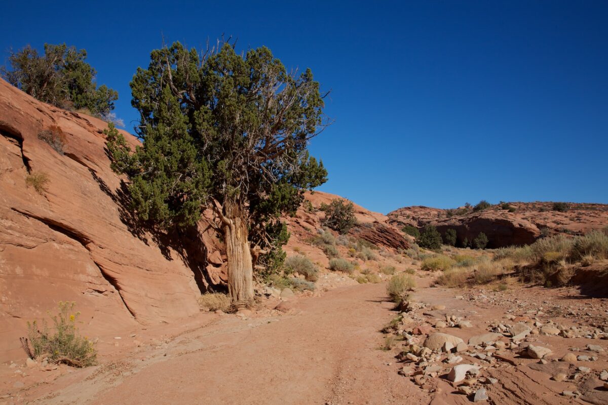 Beschreibung der Anfahrt: Die Anfahrt ist im Prinzip ganz einfach. Man fährt 41.5km auf der Hole in the Rock Road und biegt dann links in die BLM 252 Rd ab. Koordinate: Breite 37.466624, Länge -111.223908. Nach einem guten Kilometer hält man sich links und nach weiteren 1.65km hat man den Parkplatz und Trailhead zu den Slot Canyons des Dry Fork erreicht. Koordinate: Breite 37.476754, Länge -111.220259.