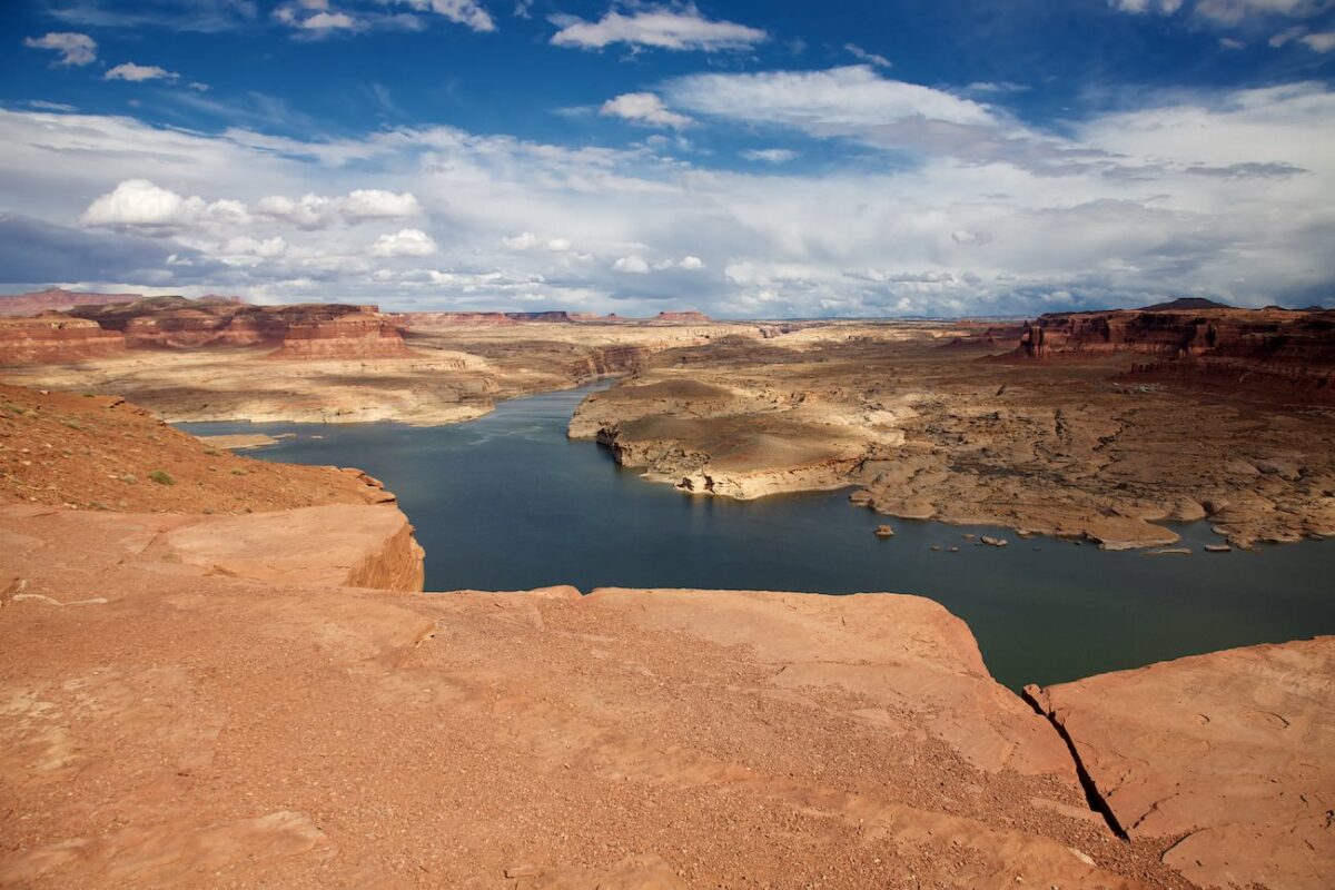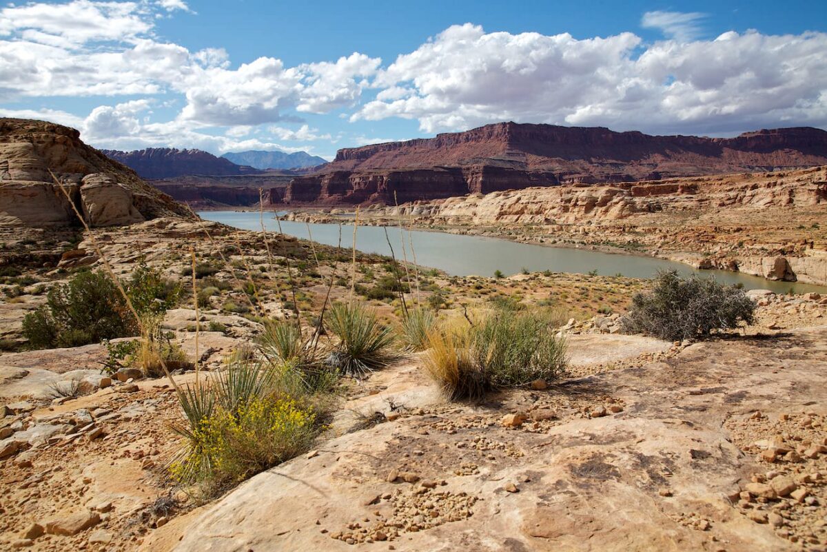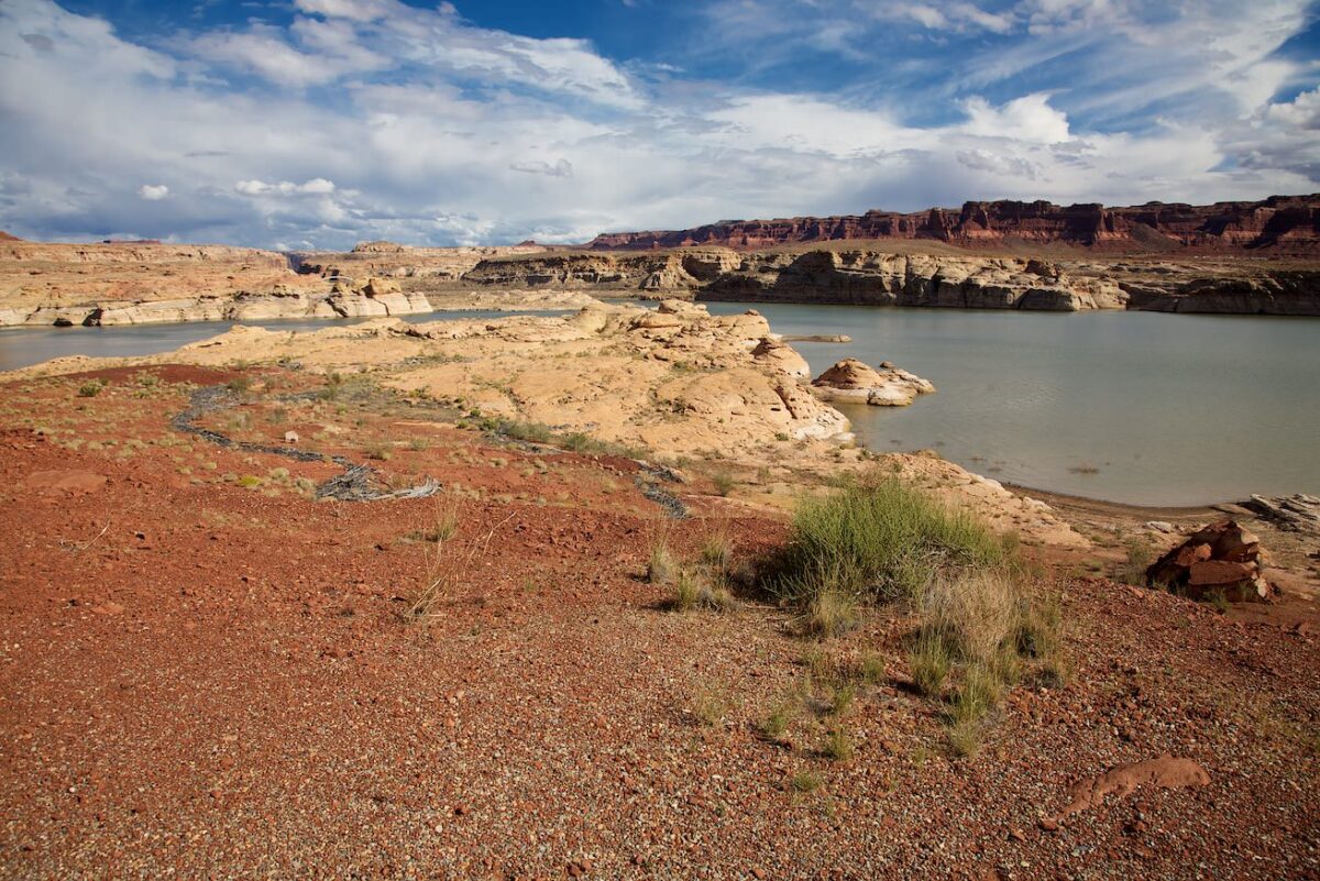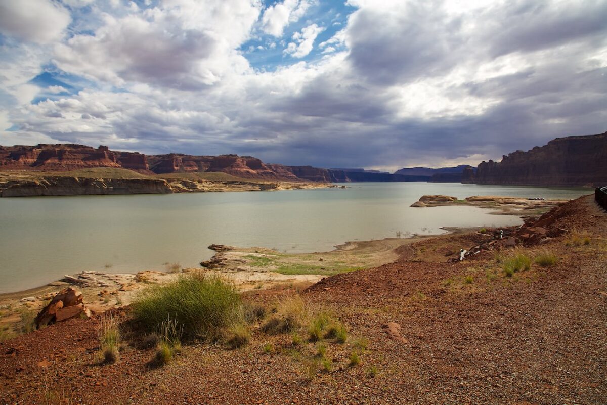 Update April 2022: Nachdem die Dürre im Südwesten schon sehr lange andauert, ist der Lake Powell rund um Hite völlig verschwunden. Den See gibt es nicht mehr und auch der Colorado ist geschätzte 20m in sein Flussbett eingegraben. Ob und wann es hier jemals wieder Wasser geben wird steht wohl in den Sternen. Der Anblick ist jedenfalls erschreckend.