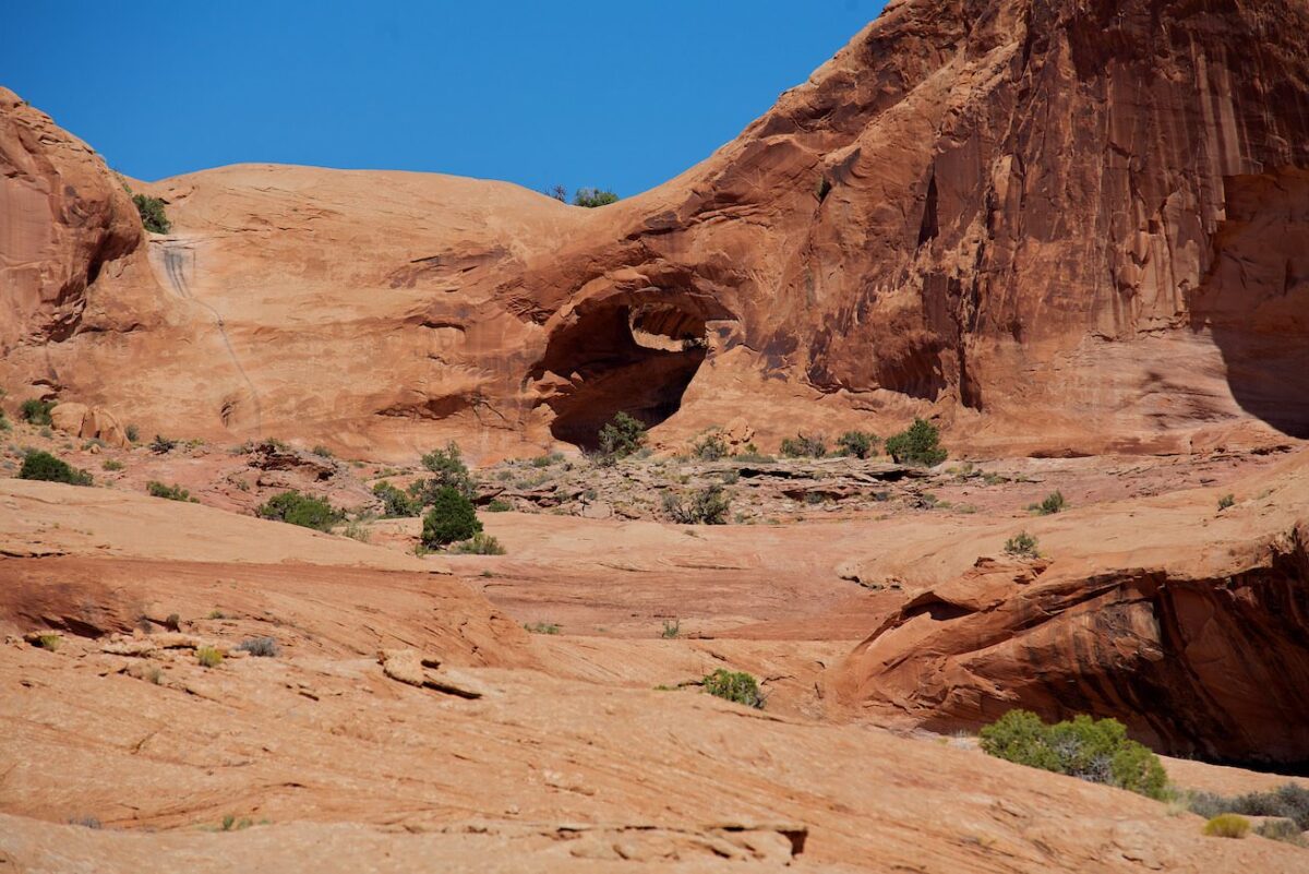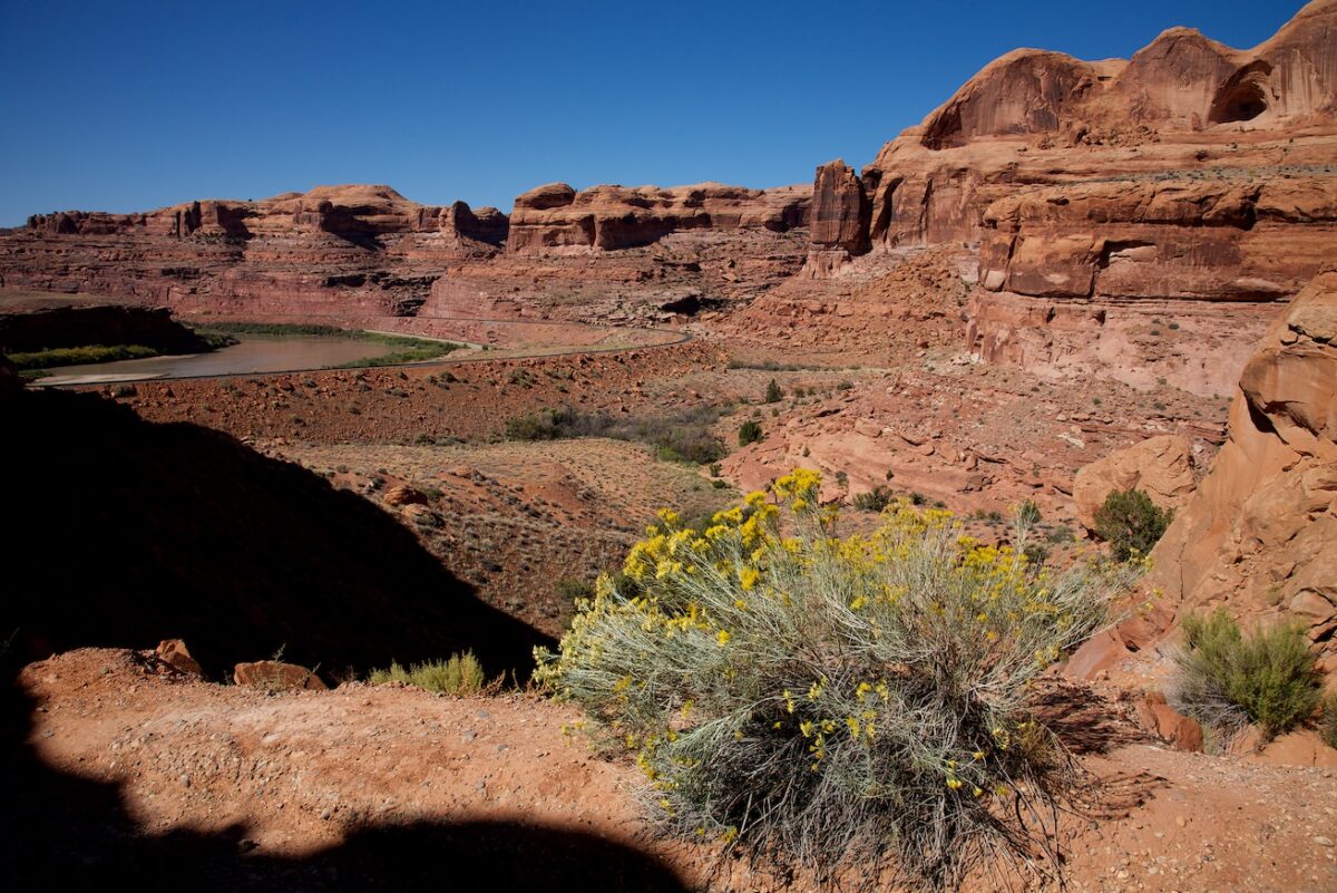 Beschreibung der Anfahrt: Der Trailhead zur Wanderung liegt etwa 20km westlich von Moab. Zuerst fährt man ca. 4km nördlich auf dem Highway 191 und biegt dann links in den Highway 279 ab. Nachdem man der Straße für 16km folgt, hat man den Parkplatz auf der rechten Seite erreicht. Der Parkplatz ist beschildert, man kann ihn kaum verfehlen.