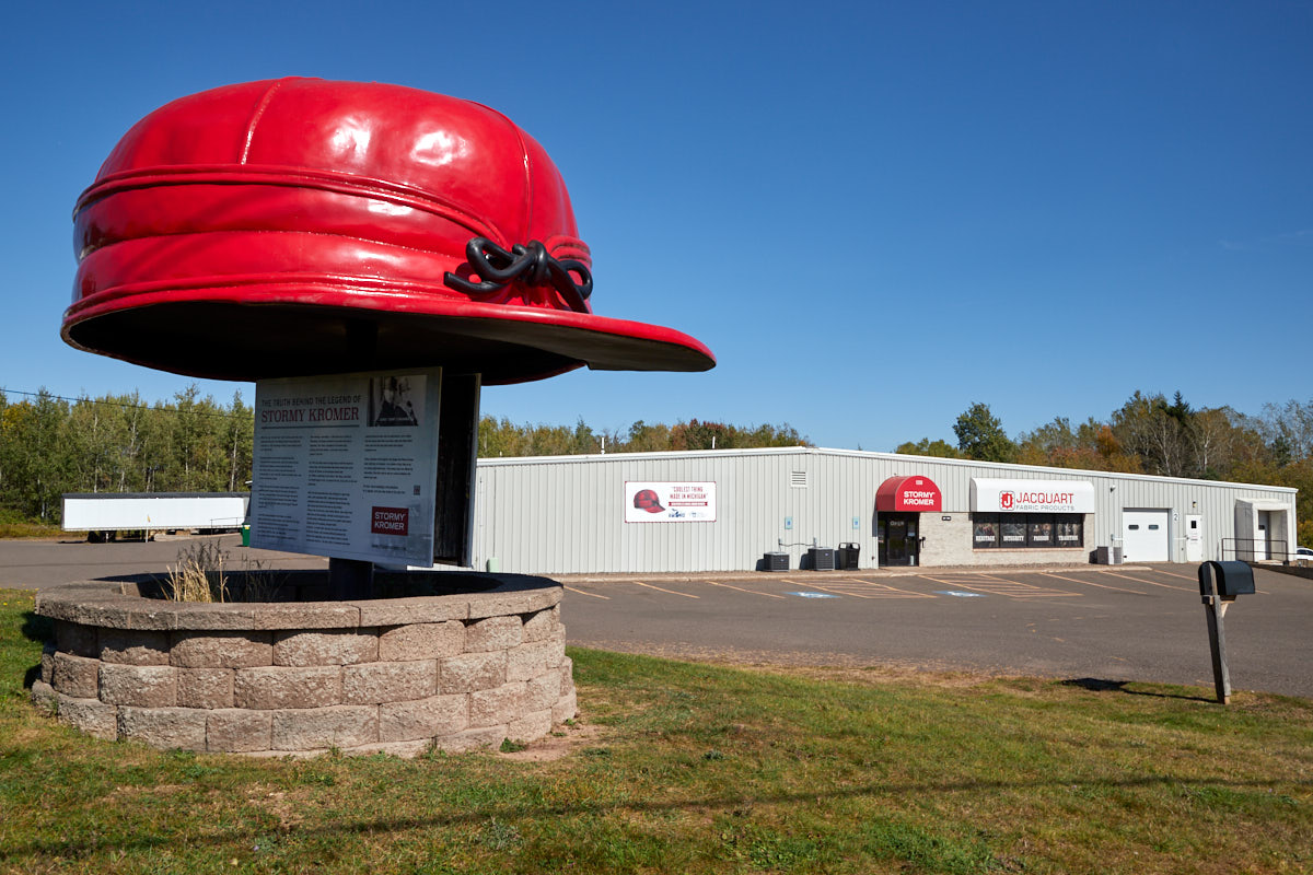Description: The Stormy Kromer hat is a wool hat produced in Ironwood, Michigan. It is named after George “Stormy” Kromer (1876-1970), a semi-professional baseball player from Wisconsin. Kromer lost many hats to the wind while working on the trains, and in 1903 he asked his wife Ida to make him a warm hat that would fit better. She modified a baseball cap into what would later become the Stormy Kromer hat by sewing on a pair of earflaps. Due to its popularity with other railroad employees, the Kromers founded the Kromer Cap Company in 1903 to produce the caps. In 1919, the Kromers opened a factory in Milwaukee, Wisconsin, due to the ever-increasing demand. George Kromer sold the company to Richard Grossman in 1965 and in 2001 the Kromer Cap Company planned to discontinue the production of Stormy Kromer caps. The rights to the caps were purchased by Bob Jacquart, owner of Jacquart Fabric Products, and production was moved to Ironwood, Michigan. Stormy Kromer Mercantile was founded and increased production from the previous 3000 to 6000 caps to over 50,000 caps per year. The hats are unusual in that they offer a lifetime warranty against defects and a three-year insurance policy for events such as loss once the product is registered.