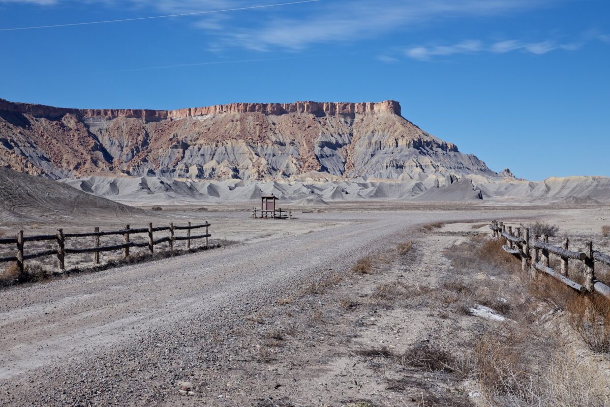 To the east, a very good gravel road leads along Factory Butte. This is a good starting point for exploring the impressive mountain. From the Factory Butte Road there are also junctions to other dirt roads that lead to other attractions in the region (see below).