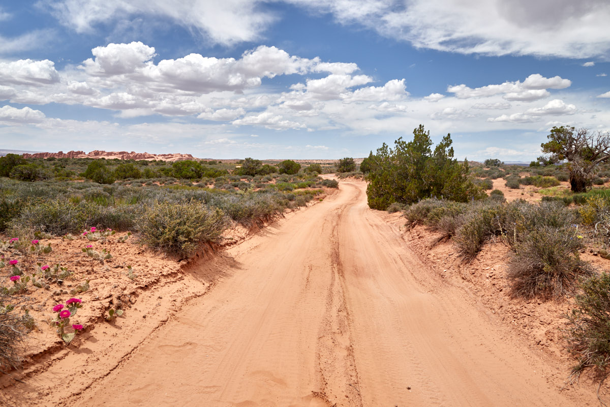 Description: The Eye of the Whale Arch is located in a more remote part of the Arches NP and is therefore a lesser-known arch in the park. It can be reached via a dirt road that definitely requires four-wheel drive and a decent amount of ground clearance. The road is very sandy in parts and there are some rocky steps to climb. We recommend that you only drive here with a suitable vehicle.