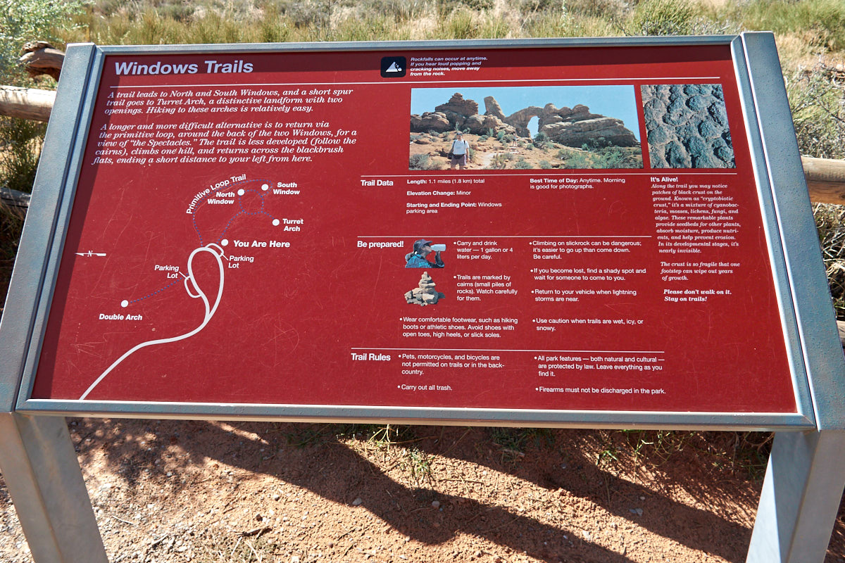 Description: Here you have two options. You can simply hike to the windows and back, or once around. The way to the windows is well developed. The way around the windows is a good trail. Partly you have to climb a little bit over slickrock.