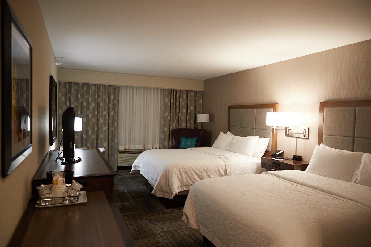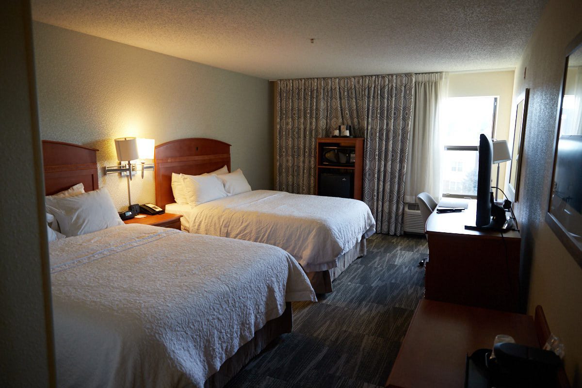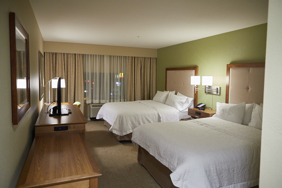 Our rating: In most cases, Hampton Inn hotels offer a very good standard. Again, the hotel was well maintained and made a good impression. The room was large and clean. We would stay here again.