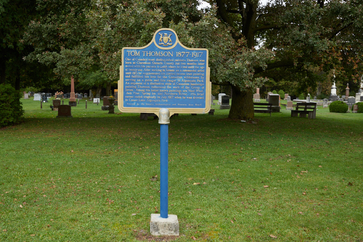 Beschreibung: Tom Thomson war ein Wegbereiter der modernen kanadischen Landschaftmalerei. Seine Werke, die oft die wilde Natur Ontarios darstellen, beeinflussten maßgeblich die Group of Seven, eine einflussreiche Künstlergruppe in Kanada. Obwohl er nie offiziell Mitglied der Gruppe war, gilt Thomson als ihr geistiger Vorläufer. Am 8. Juli 1917 wurde Thomson tot in einem See im Algonquin PP gefunden. Die Todesursache ist bis heute ungeklärt und so ranken sich zahlreiche Spekulationen und Legenden um den Tod des Künstlers. Er liegt auf dem Friedhof in Annan, nahe Owen Sound begraben.