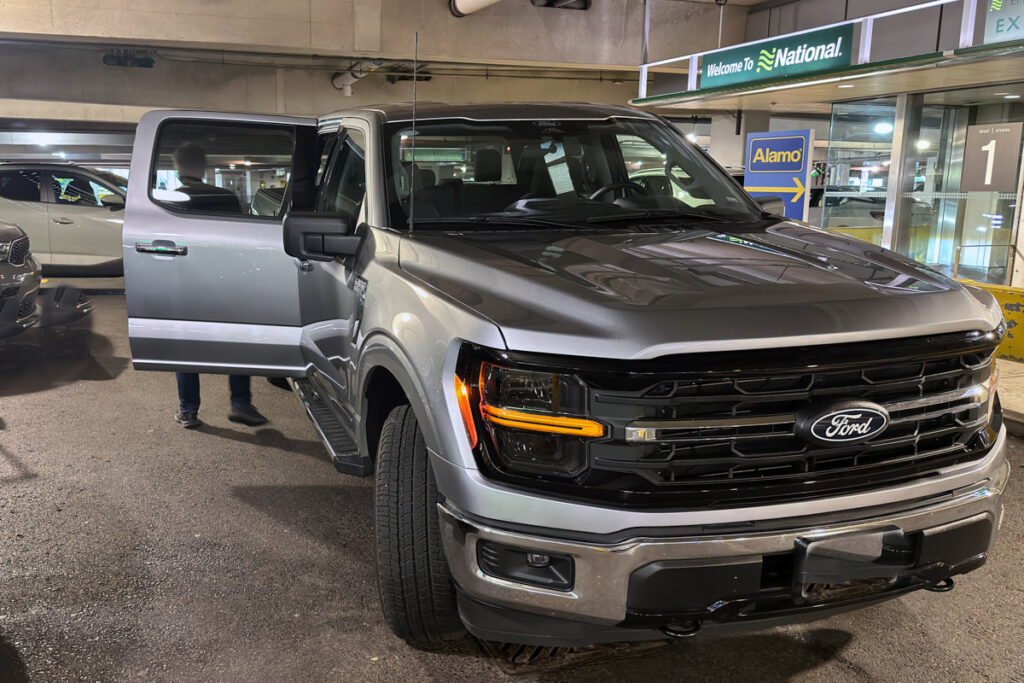 In Toronto befinden sich die Mietwagenstationen direkt am Flughafen. Mann muss nicht extra mit einem Shuttlebus zu einer Außenstelle fahren. Grundsätzlich gibt es in Toronto bei Alamo auch Skip the Counter, bei unserer Buchung hat das allerdings nicht geklappt. Ob das am gebuchten Pickup lag wissen wir nicht und so mussten wir zuerst an einen Schalter und wurden da eingecheckt. Es war aber nicht viel los und so kostete das ganze auch nur ein paar Minuten extra. Im Parkhaus gab es dann auch nicht wirklich viel für uns zu tun, denn es stand genau ein Pickup da. Es war ein silberner, praktisch nagelneuer F150 XLT mit etwas mehr als 6000km auf dem Tacho.